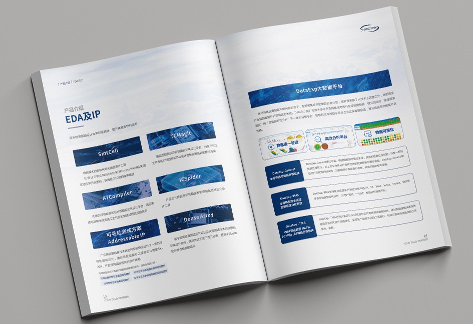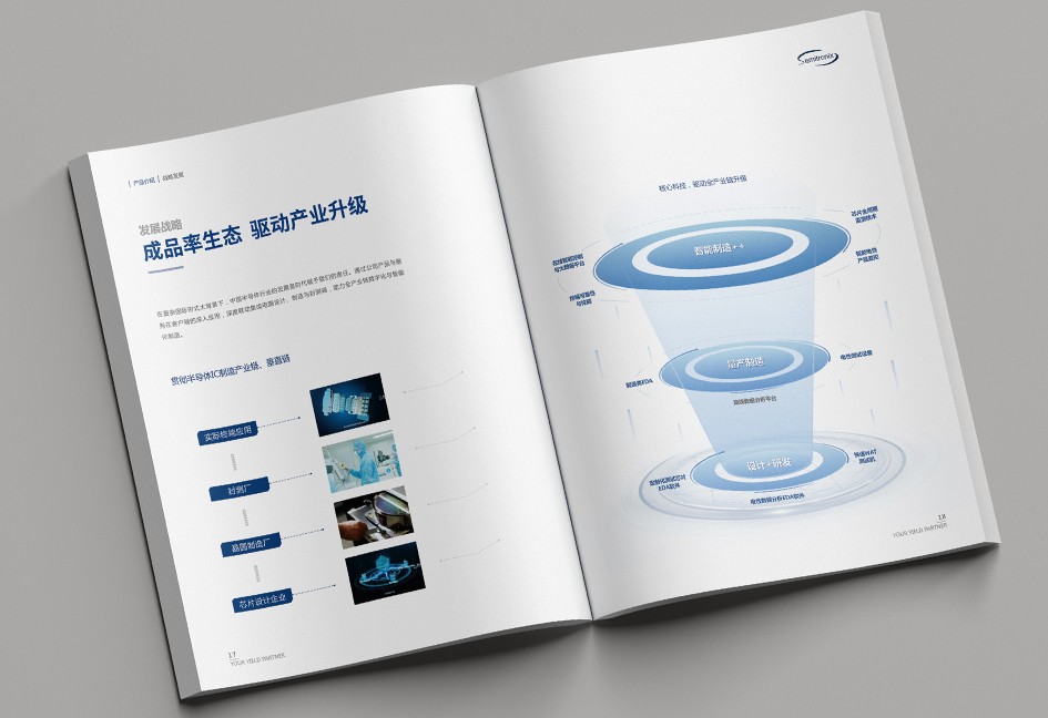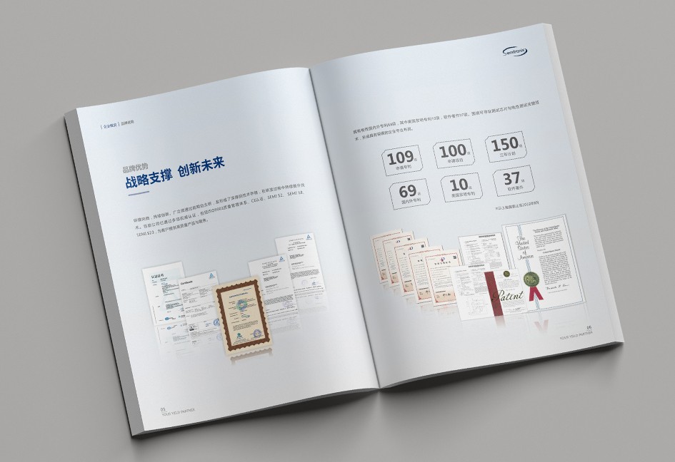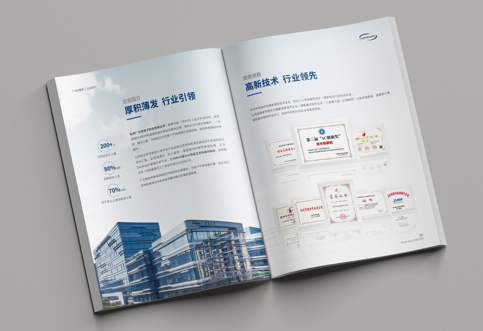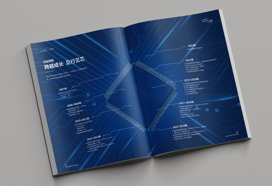 廣立微畫冊設計以“數(shù)之所指,芯之所向”為主題,分公司簡介、品牌優(yōu)勢、公司歷程、產(chǎn)品路線、產(chǎn)品介紹、戰(zhàn)略發(fā)展、社會責任幾個單元依次展開,圖文并茂,簡潔大氣,科技感十足!